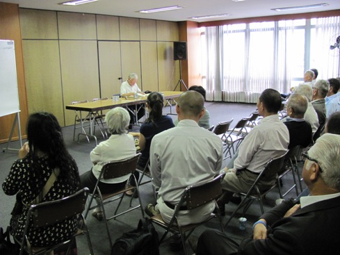 “勝ち組の頭脳”に目されながらも普遍的な考えを追求した川畑三郎について約40人の聴衆が熱心に耳を傾けました。