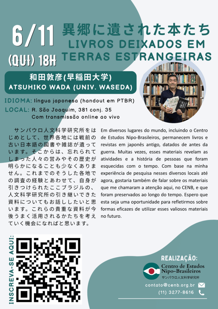 サンパウロ人文科学研究所 webサイトのお問い合わせ、またはEmail : contato(at)cenb.org.br TEL : +55-11-3277-8616(平日14:00~18:00、日本語またはポルトガル語)