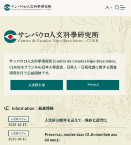 サンパウロ人文科学研究所(人文研/Centro de Estudos Nipo-Brasileiros, CENB)は、公式団体として認可された1965年からの、2025年の60周年を記念し、公式ウェブサイトと所蔵資料データベースを全面リニューアルしました。