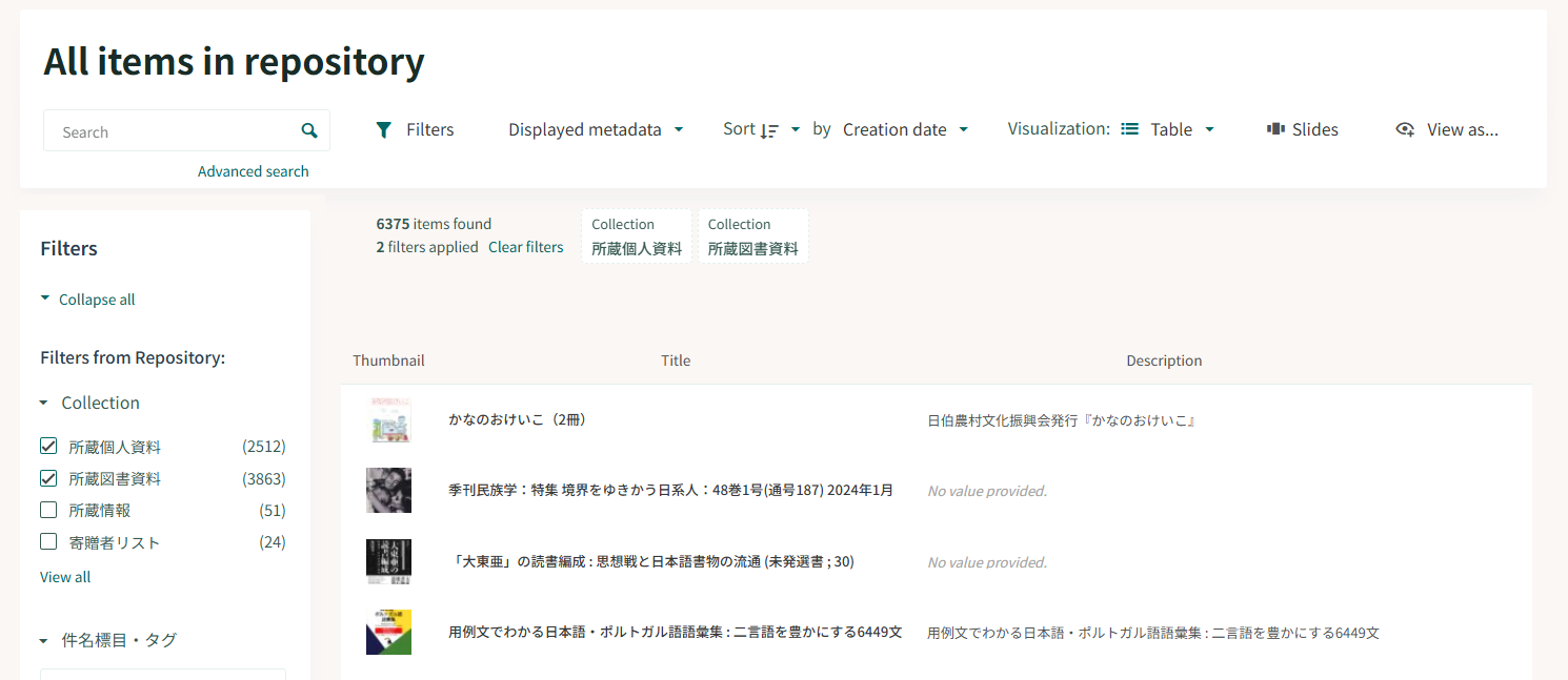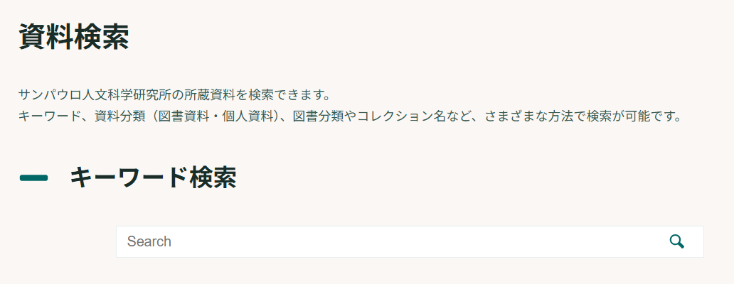キーワード検索:図書資料・個人資料を横断して検索できます。